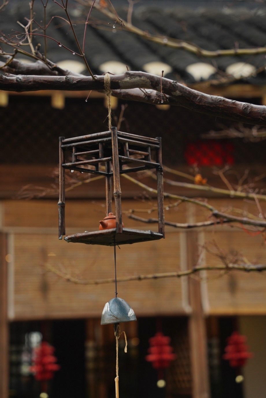 雨珠在屋檐下轻盈跳跃