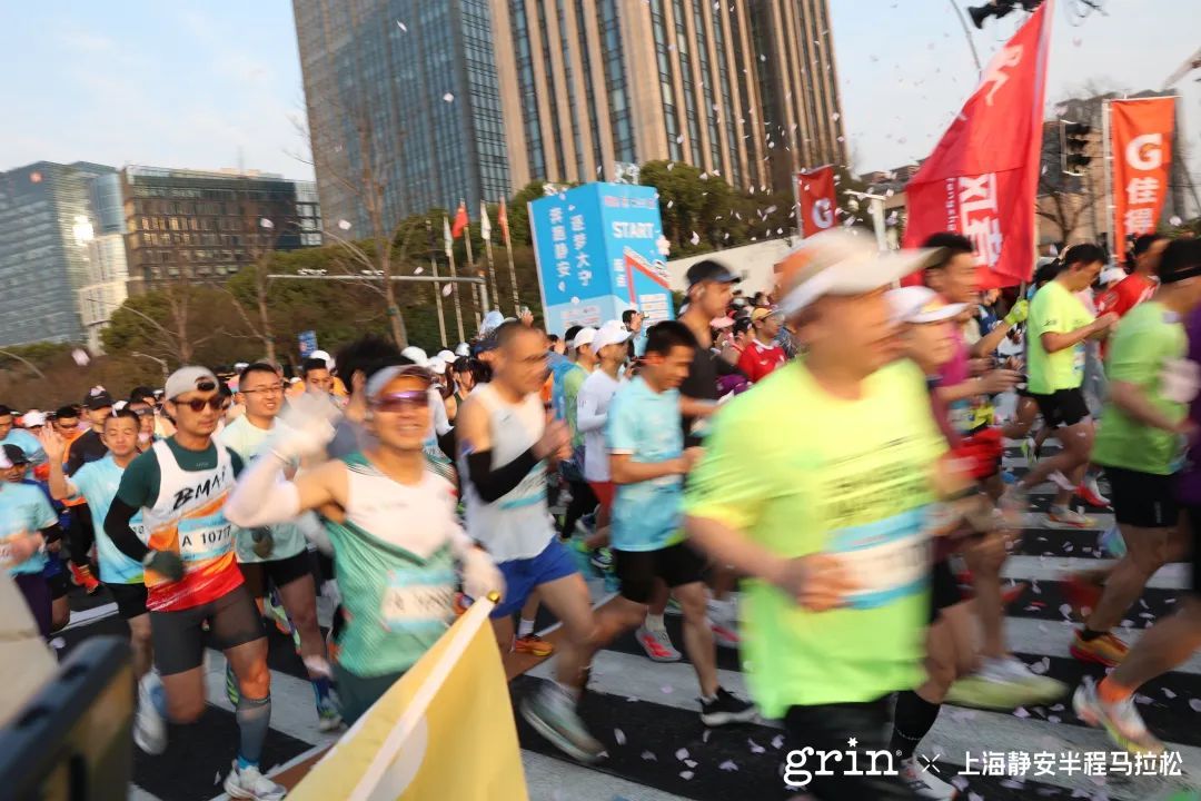 3月16日早上7时,2025上海静安半程马拉松在大宁公园北门鸣枪开跑,近5000名跑者在晨光中踏上21.0975公里的征程。