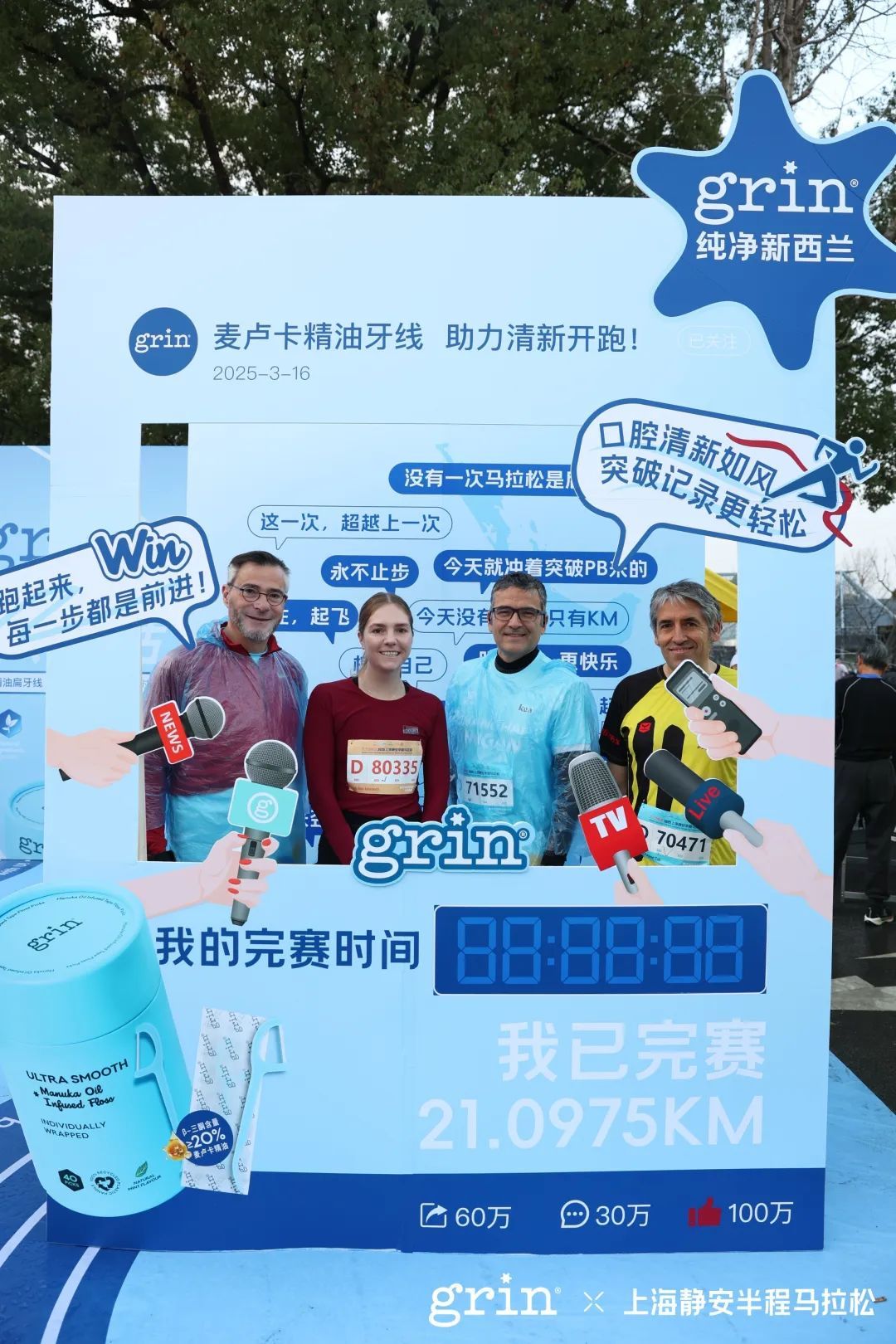 其中,一支由新西兰专业天然口腔护理品牌grin组织的30人“跨国跑团”尤为亮眼——来自新西兰、英国、意大利、西班牙、墨西哥、南非等国的跑者身贴“grin”logo,在花海赛道中形成一道流动的“国际风景线”。