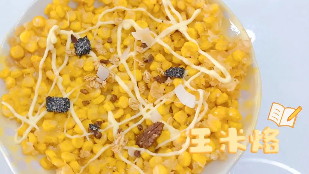 玉米粒、牛奶、生粉、食用油、白砂糖、沙拉酱、坚果、果干、麦片。