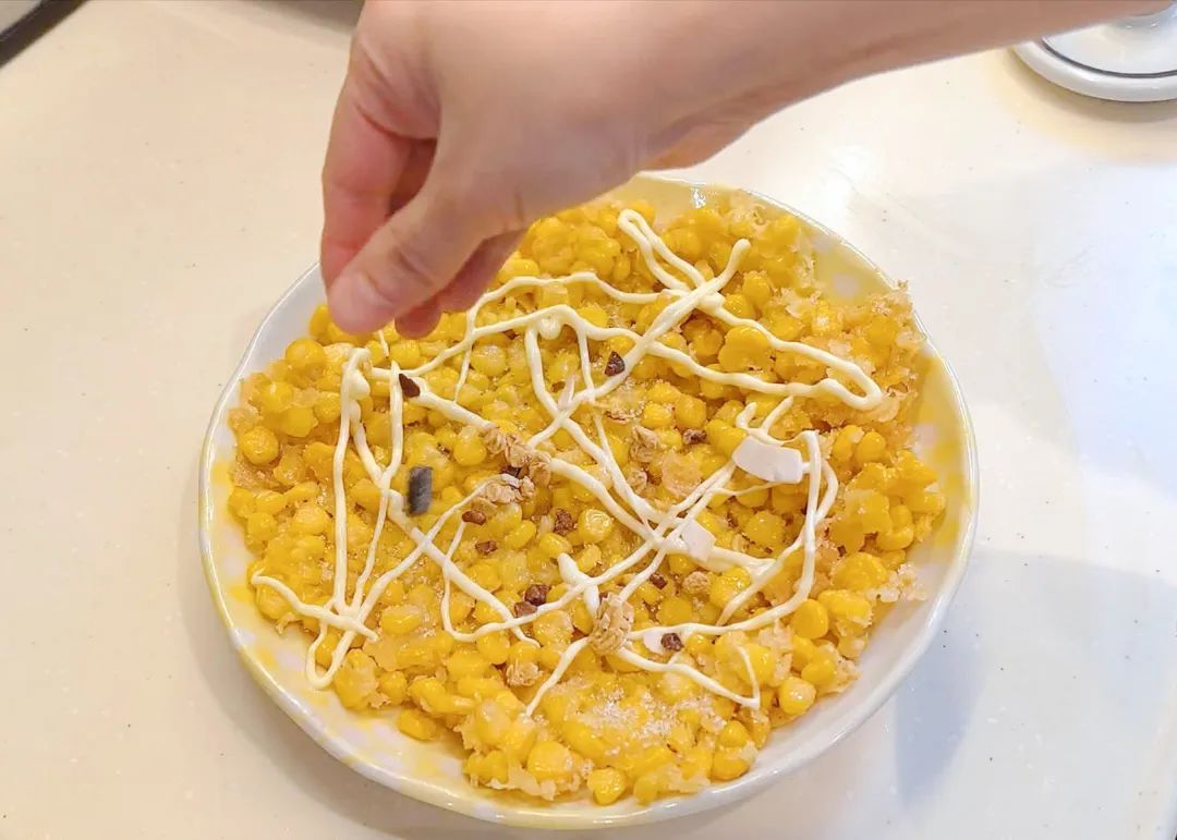 3.加入玉米粒铺平。