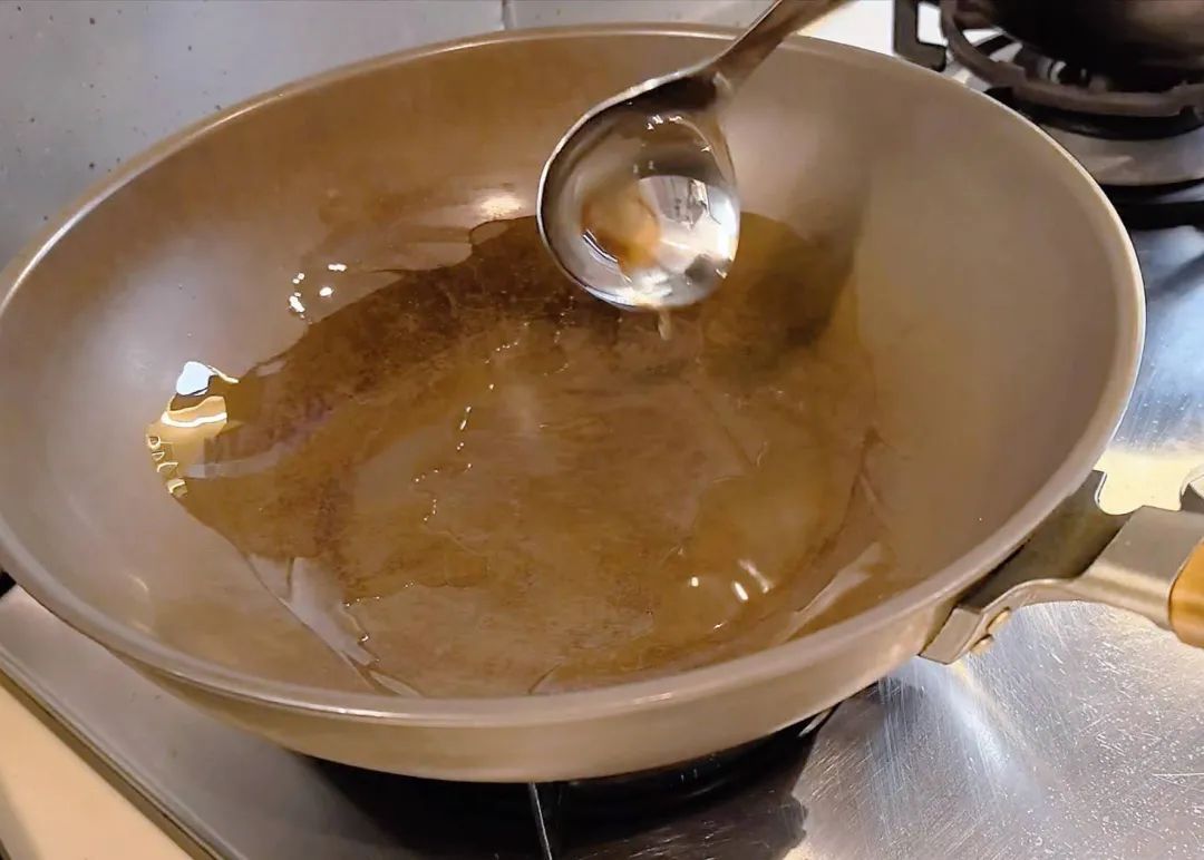 2.取大量食用油烧热后倒出,锅中留少量食用油。