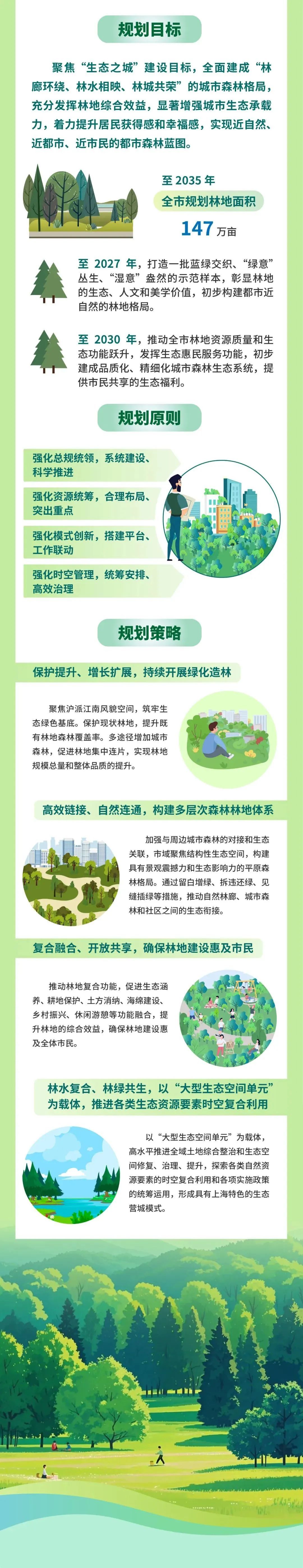 市规划资源局介绍,《上海市林地空间专项规划(2025-2035)》由市规划资源局和市绿化市容局组织编制,目前已形成规划草案。该草案规划目标显示,至2035年,全市规划林地面积为147万亩,全面建成“林廊环绕、林水相映、林城共荣”的城市森林格局,充分发挥林地综合效益,显著增强城市生态承载力,着力提升居民获得感和幸福感,实现近自然、近都市、近市民的都市森林蓝图。