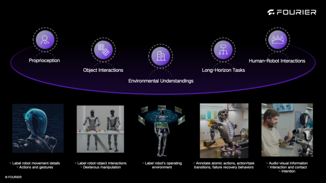 高质量机器人动作数据是具身智能发展的核心驱动力。然而真实场景下的机器人动作数据长期面临采集成本高、标注精度不足等问题,制约着行业进步。Fourier ActionNet数据集囊括傅利叶GRx系列所有机型的各类任务训练,完整记录机器人在真实环境中的任务执行数据,涵盖了对常用工具、家居用品、食物等多种物体的精确取放、倾倒等操作,以及在不同环境条件下实现泛化执行。