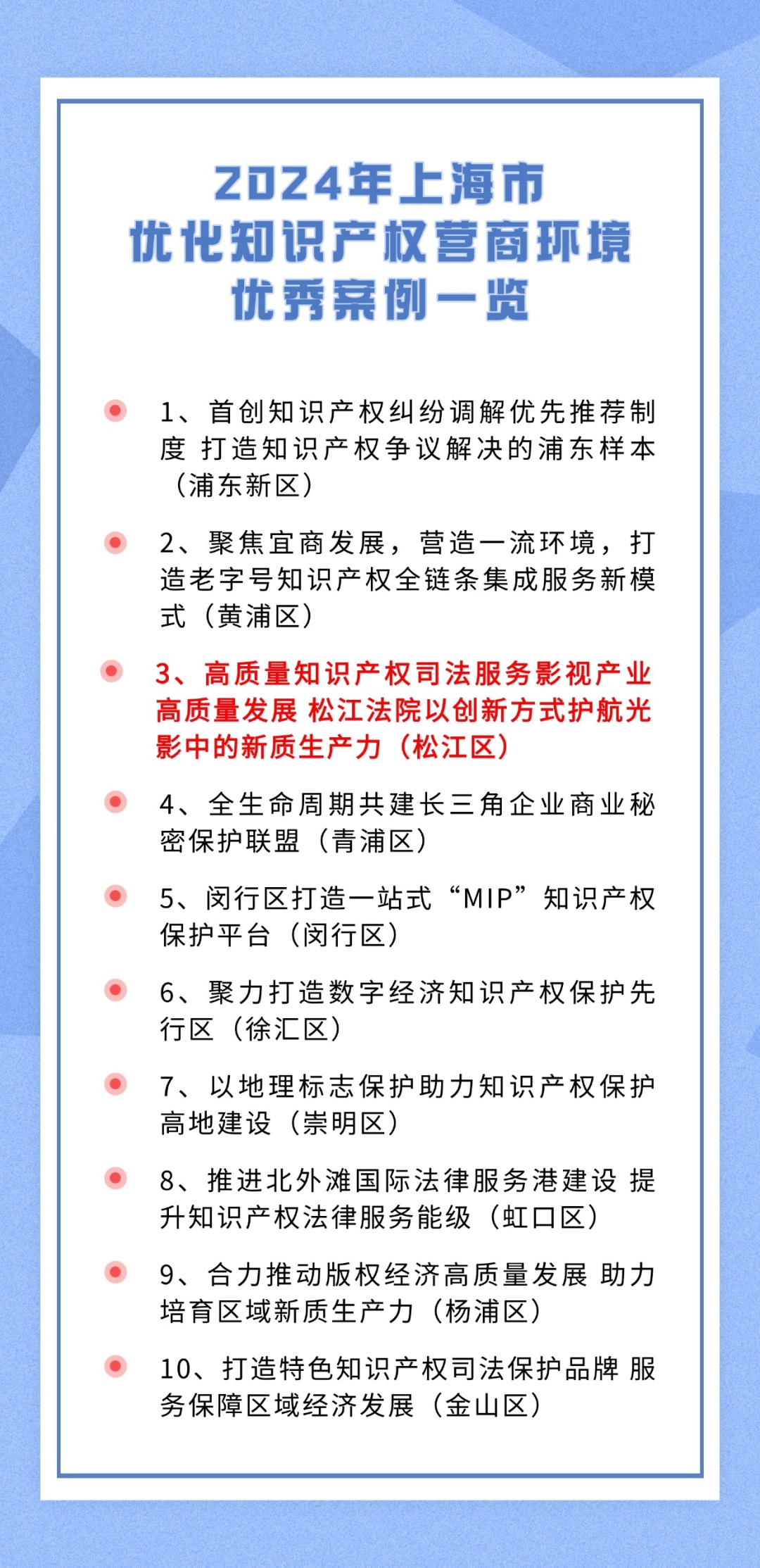 针对影视产业新质生产力的保护,该基地发布了上海首份涉影视产业审判白皮书,被《法治日报》等权威媒体特稿刊发;会同东阳法院联合发布了涉影视产业的典型案例;对涉诉较多的小微影视企业、上影公司等头部企业发出司法建议;结合影视产业知识产权网络侵权纠纷高发的特点,和上海政法学院共同组建“尚正调解工作室”,安排教师及学生参与侵害信息网络传播权纠纷的诉前调解,已成功调处案件30余件。