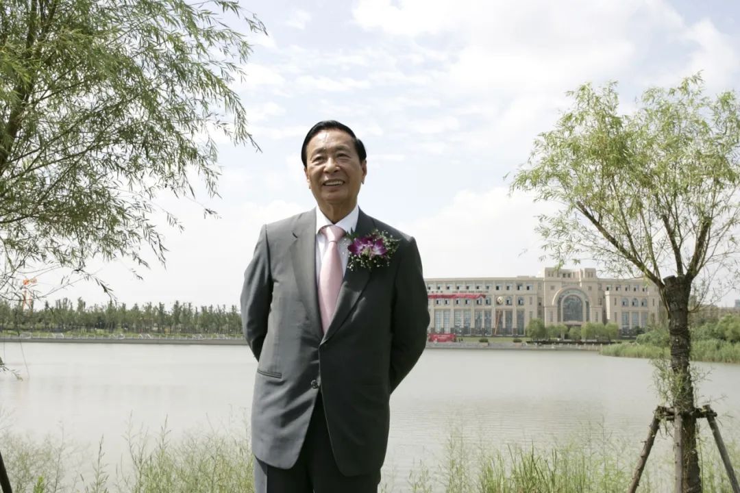 2008年9月9日,李兆基先生携家人出席“李兆基图书馆”命名揭牌仪式,并在江湾校区月湖边留影。