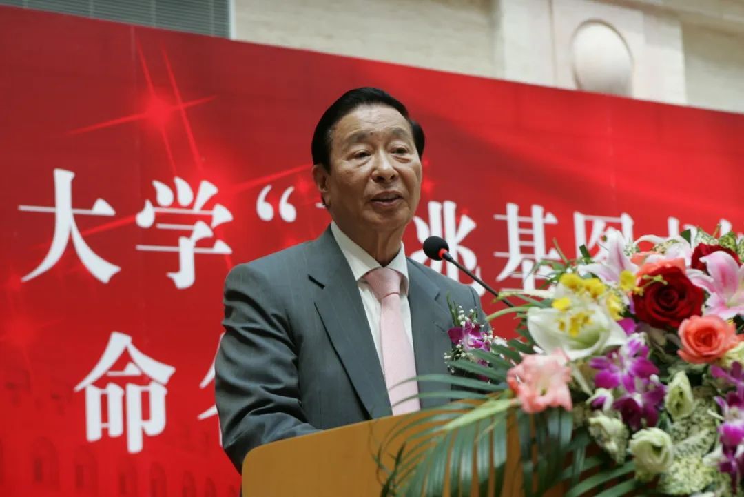 李兆基在“李兆基图书馆”命名揭牌仪式上讲话。