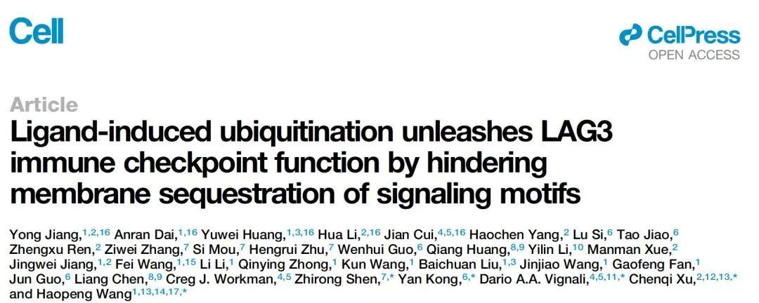 论文名称:Ligand-Induced Ubiquitination Unleashes LAG3 Immune Checkpoint Function by Hindering Membrane Sequestration of Signaling Motifs