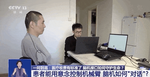 在首都医科大学附属北京天坛医院,截瘫患者小白实施无线微创脑机接口植入手术,经过两个月康复训练,患者成功实现意念控制光标移动。