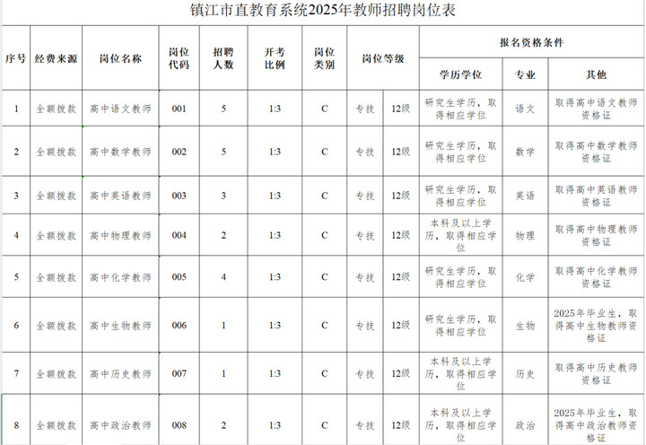 镇江市直教育系统于近期招聘全额拨款事业单位编制教师48名。