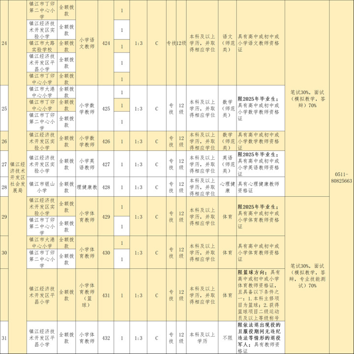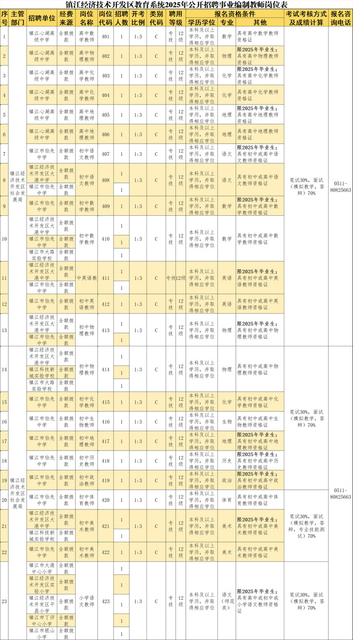 镇江经济技术开发区教育系统面向社会公开招聘事业编制教师52名,其中:高中教师6名,初中教师24名,小学教师22名。