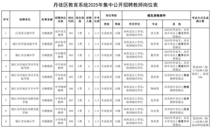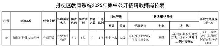 丹徒区教育系统部分事业单位面向社会公开招聘10名教师。