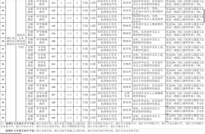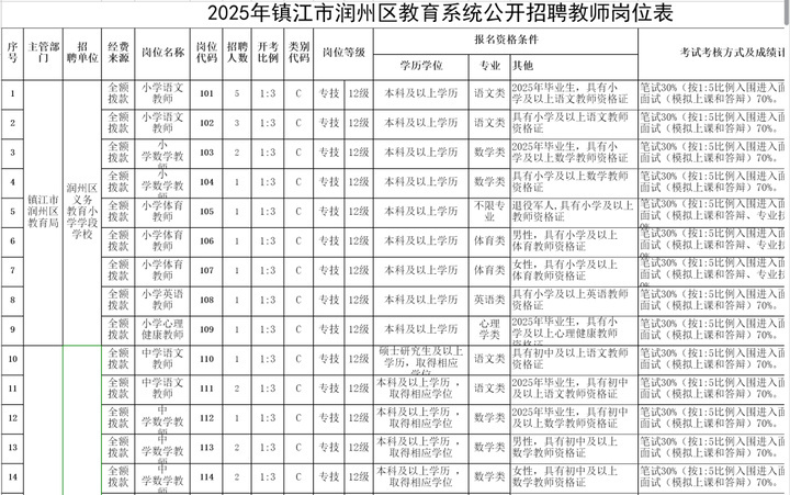 润州区教育系统面向社会公开招聘41名中小学教师。