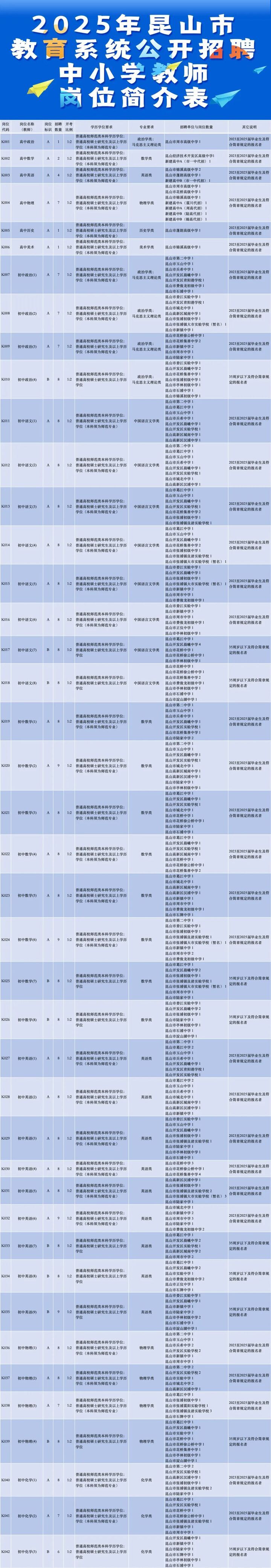 春招进行时!近日,江苏苏州、昆山、镇江、句容等多地发布新教师招聘公告,1100多个编制内教师岗位等你来。@找工作的你,快去报名吧!