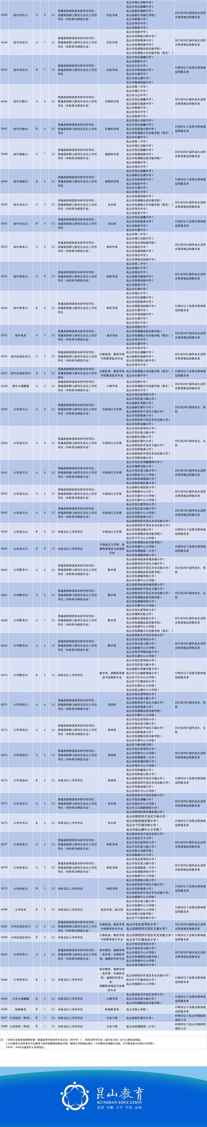 昆山市教育系统决定公开招聘560名教师(事业编)。