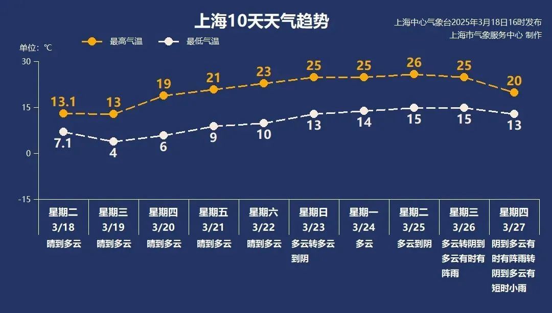 【昼夜温差大】明天(3月20日)起气温升高,周五起最高气温来到“2”字头,一天比一天暖,本周日到下周初的午后甚至会有初夏体感。昼夜温差大,基本都超过10℃。