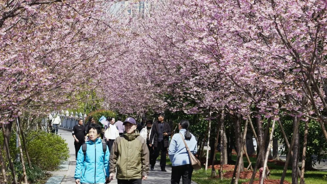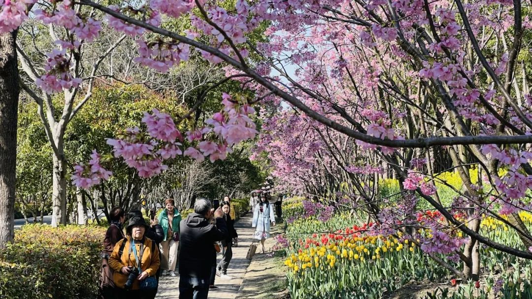 随着上周六上海樱花节开幕,顾村公园的早樱已全面绽放,景象蔚为壮观。本周,申城告别多日的阴雨,迎来晴好升温的天气,公园内衔接早樱和中樱的飞寒樱也已盛放,为市民游客带来更加绚烂的花景。