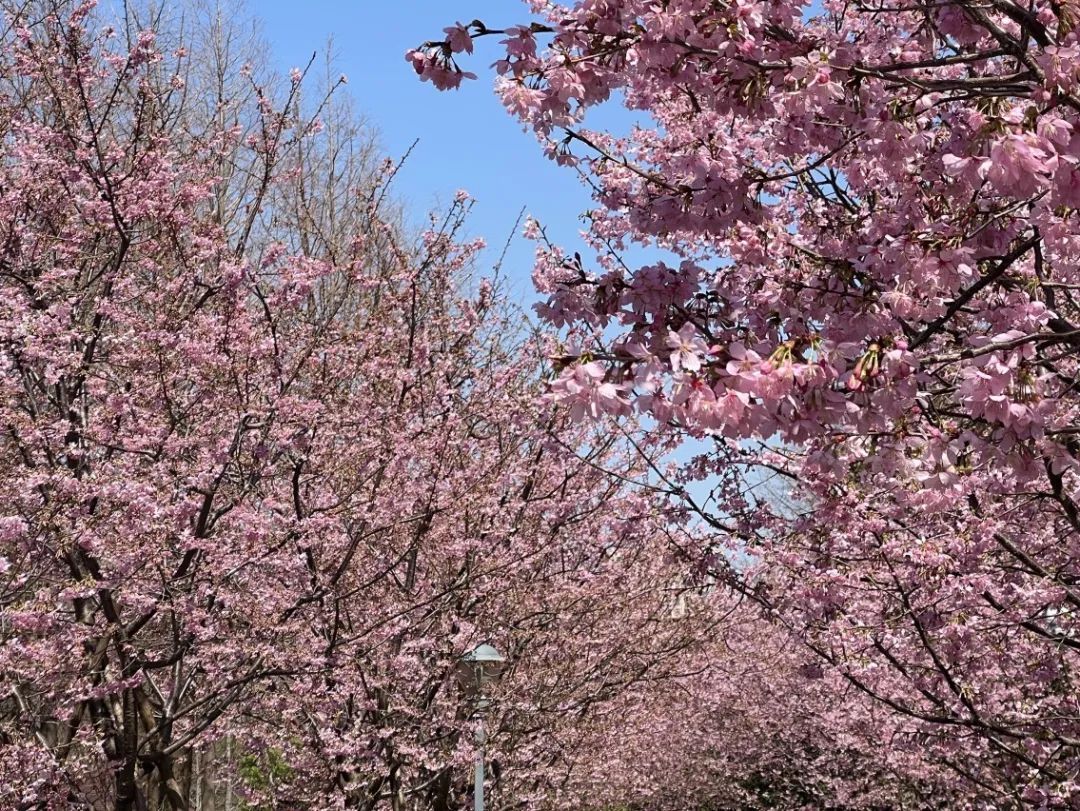 “飞寒樱的特点是树型比较高大、粉红色,非常符合中国人的赏花审美。比如1号门附近的飞寒林带,2号门附近的栖杉路,以及3号门附近的飞寒隧道,现在都是飞寒樱盛开的最佳观赏点。”顾村公园绿化负责人介绍。
