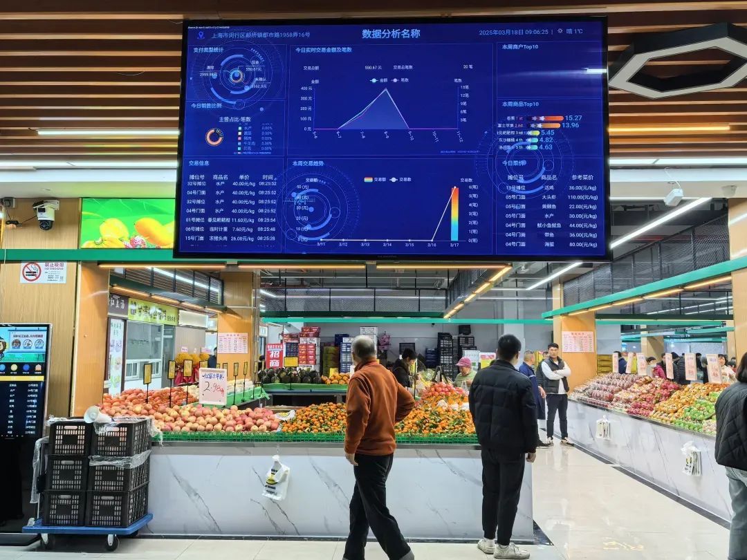 进入伟都菜市场,一眼就能看见悬挂在中央区域的智慧大屏,上面实时滚动着市场内各类农产品的检测数据、价格波动及优惠信息。