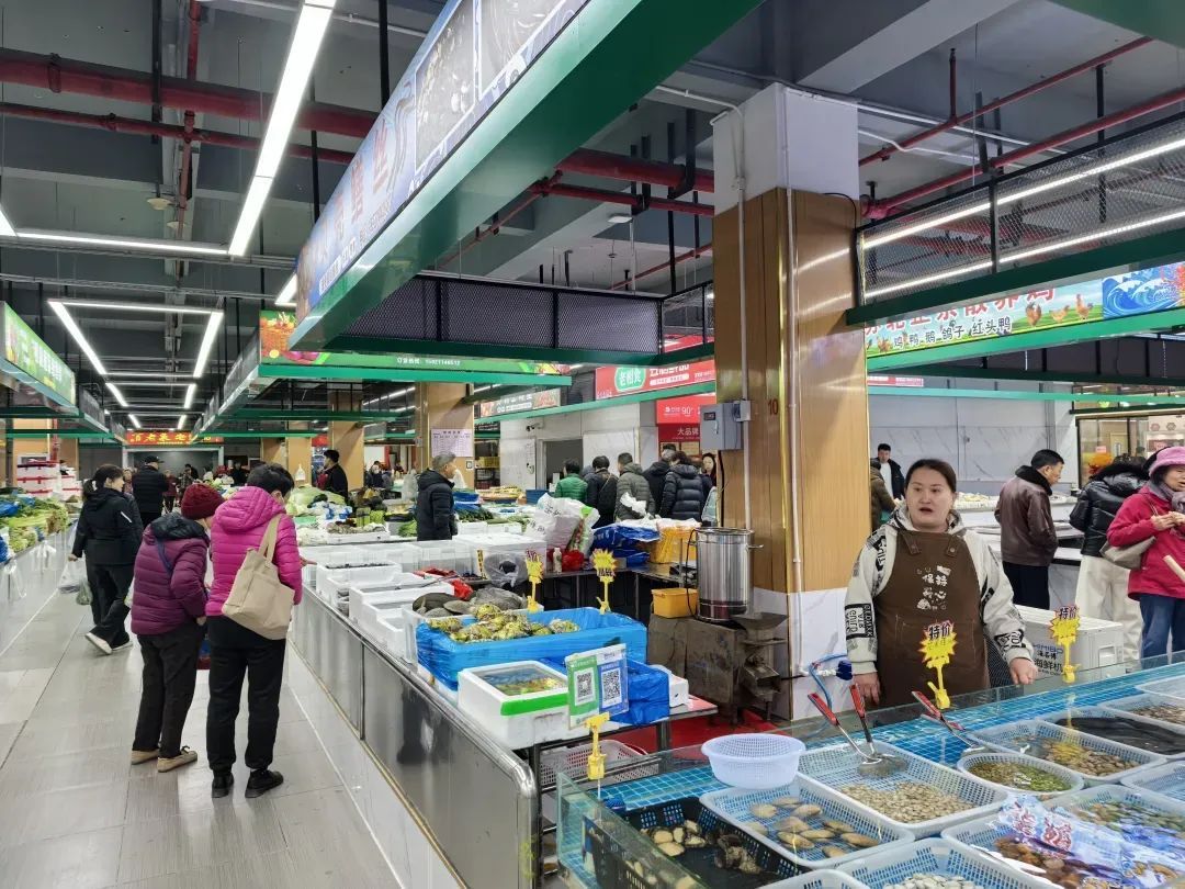 再往里走,整个菜场呈现“回字形”的动线布局,改变了原本分散的摊位设计,形成四通八达的环形通道。“以前买菜看到摊位之间有‘断头路’,懒得绕路,现在怎么走都通畅,转半圈就能买齐东西。”顾客老张说道。