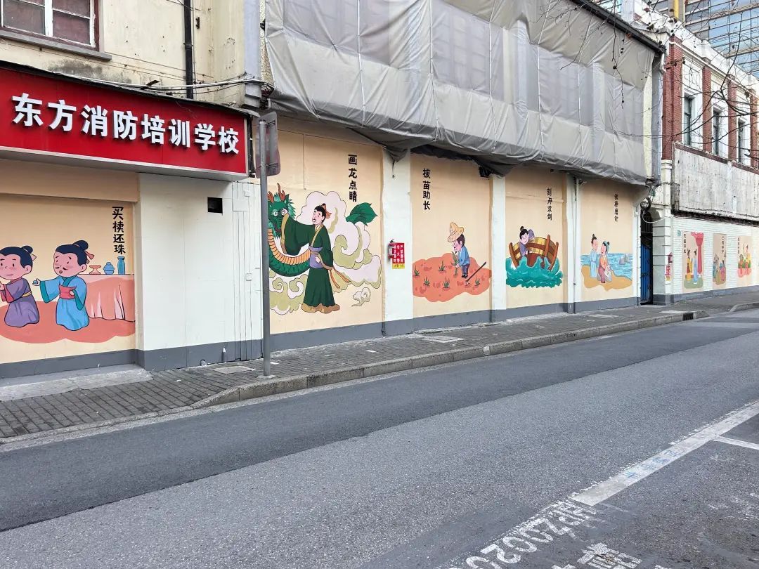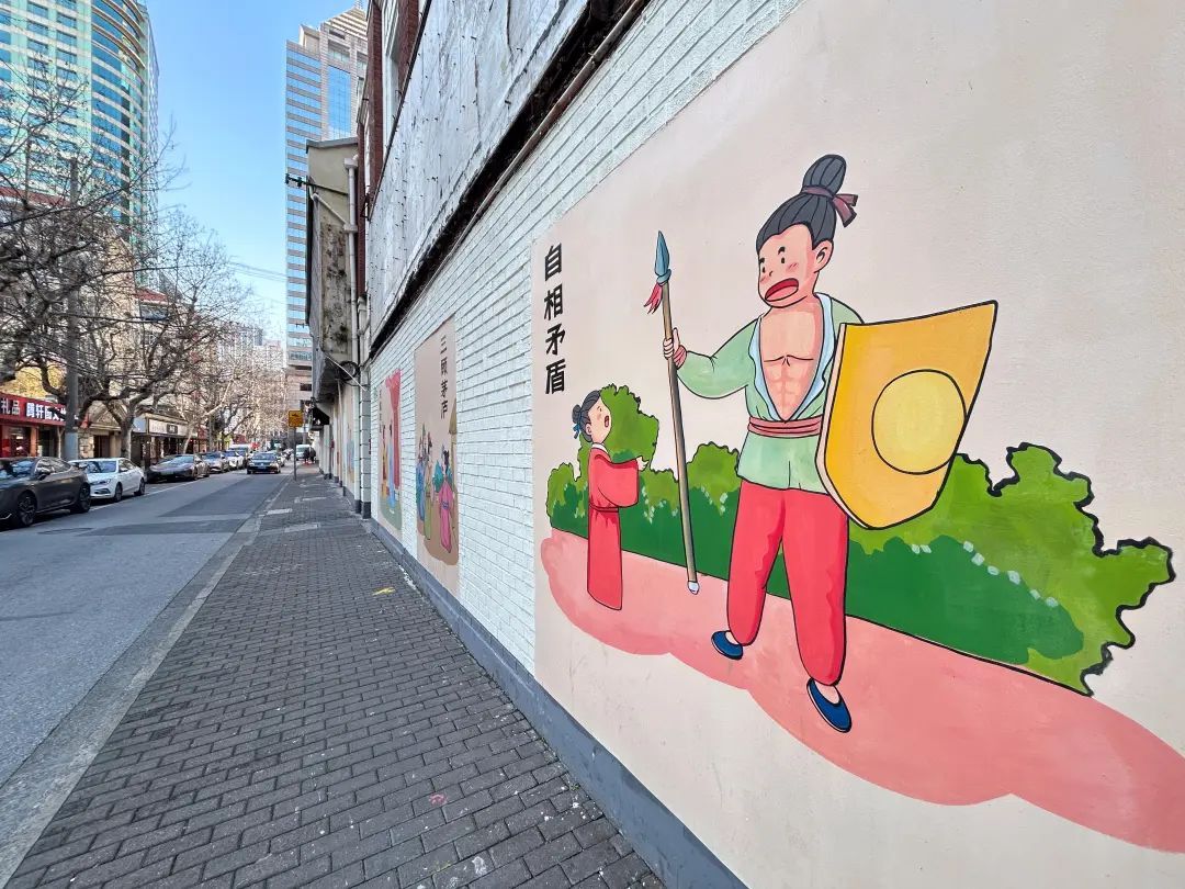注意到没?山西南路、汉口路附近,一幅幅栩栩如生的成语故事跃然墙上——丢了剑在船上做记号的楚人、把和氏璧完好无损地护送回赵国的蔺相如、提笔为龙点睛的张僧繇……这些跃然墙上的“活”成语,用最朴素的画笔为钢筋水泥的城市注入一缕千年文脉的烟火气!