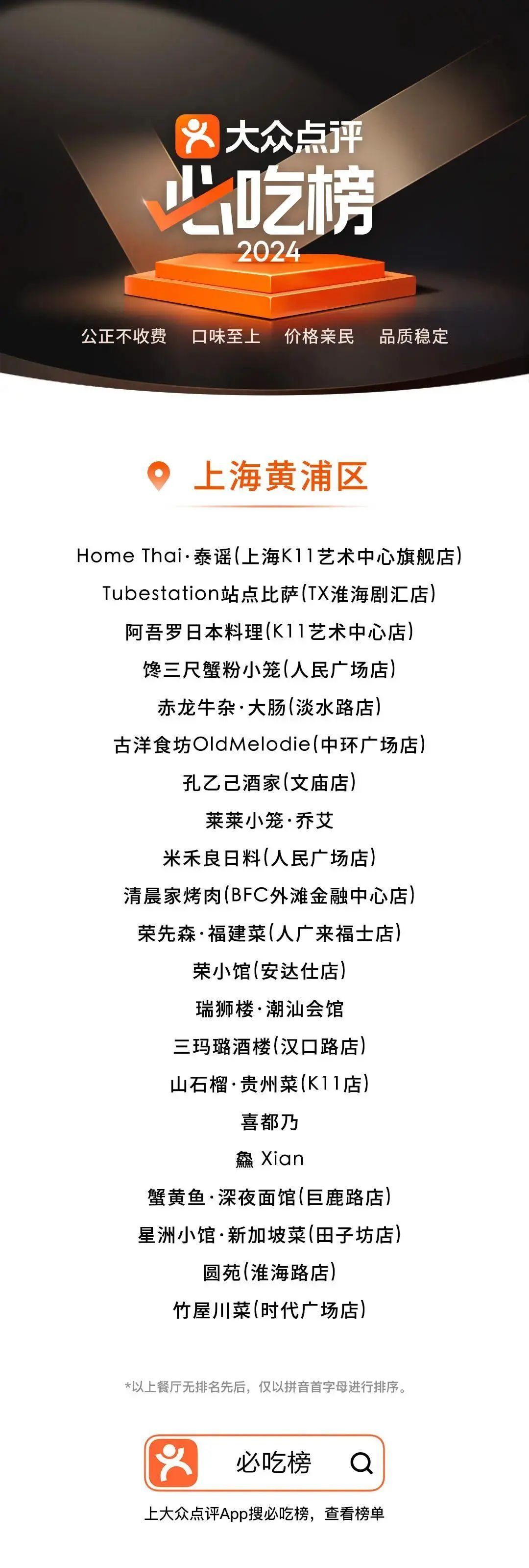 去年6月,大众点评发布2024年“必吃榜”。上海共有144家餐厅上榜,数量居全国排名第一。其中,黄浦区共有莱莱小笼、三玛璐酒楼(汉口路店)、瑞狮楼·潮汕会馆等21家餐厅入选榜单。