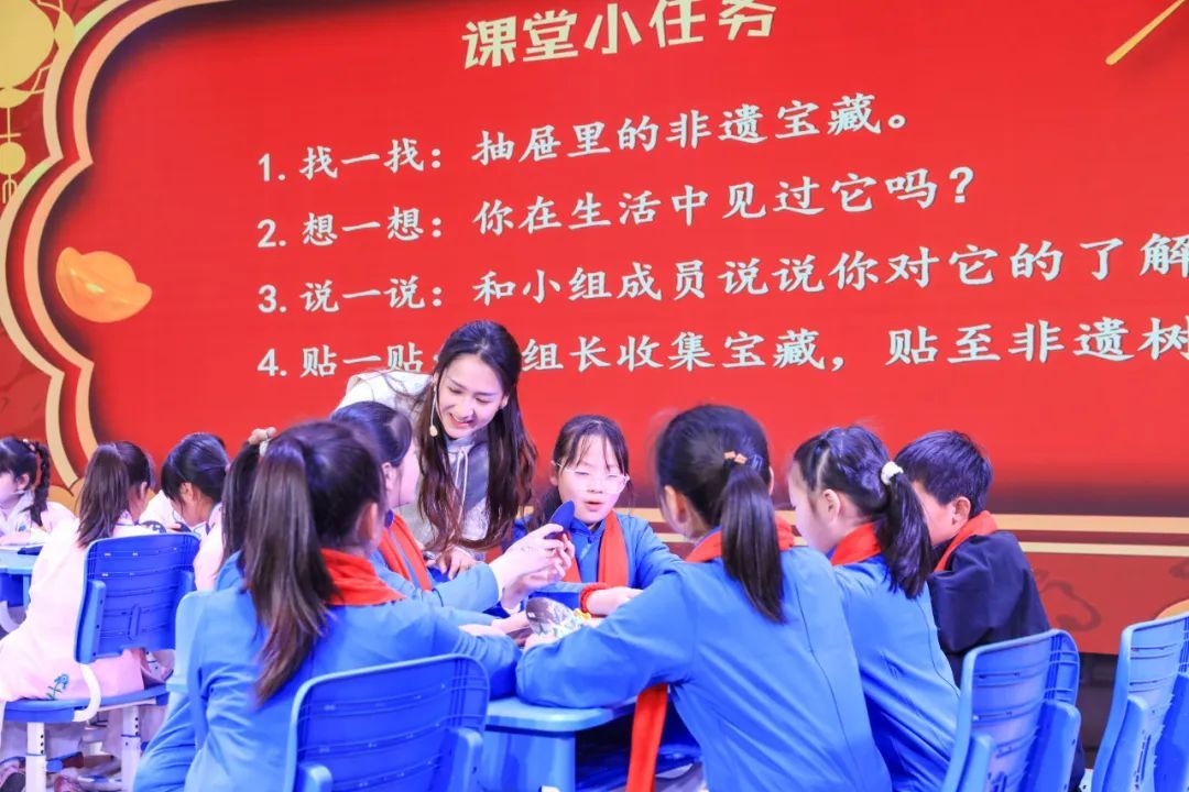 泗泾实验学校的刘烂烂执教“守护非遗文化 传承中华根脉”一课,通过探寻春晚与校园中的非遗文化宝藏,激发学生对传统文化的兴趣与自豪感。此外,还借助“小传人”的事迹,启发学生思考自身责任,培养传承意识。