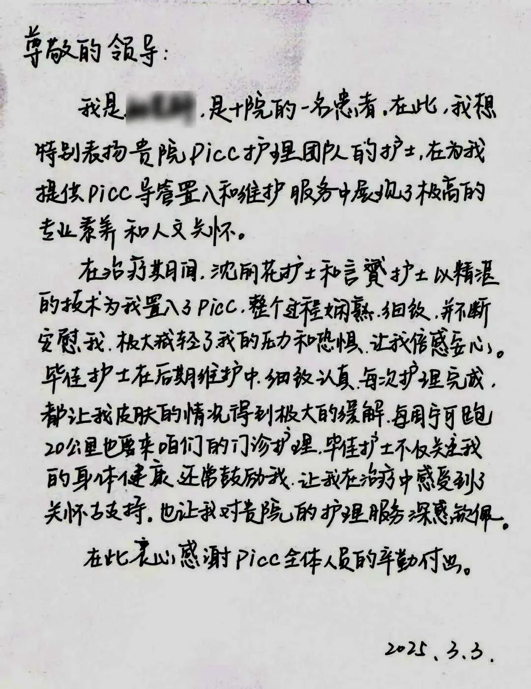 操作流程是固定、刚性的,但患者的感受、体验、需求却是多样、多变的。为此,血管通路专科护理门诊团队在严格执行规范、精准操作、严防感染的同时,还给予个性化的心理安抚、细致关怀、健康教育。正如孙女士在信中所写——“整个过程娴熟、细致……不断安慰我,极大减轻了我的压力和恐惧,让我倍感安心。”