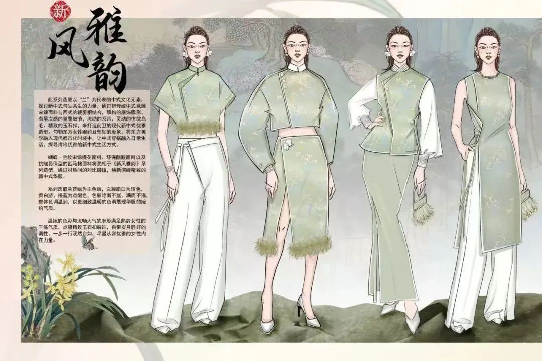 周翠华的作品《新风雅韵》以其创新的设计手法和对传统元素的现代演绎,赢得了评委们的高度赞誉,斩获本次竞赛上海选拔赛二等奖。