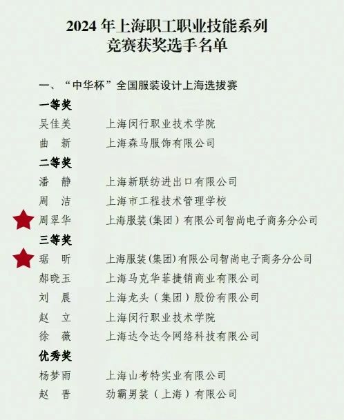 “中华杯”全国服装设计上海选拔赛是国内服装设计领域的权威赛事,汇聚了众多行业精英与优秀设计人才。来自上海服装(集团)有限公司智尚电子商务分公司的周翠华、琚昕凭借实力在赛事中摘得荣誉。
