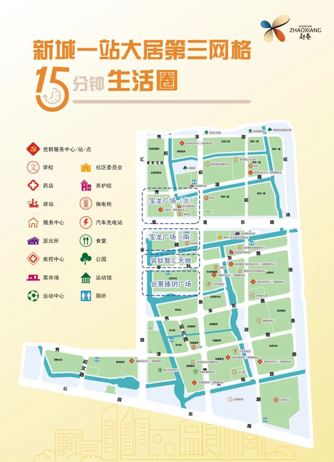 今年以来,赵巷镇围绕新兴领域各类需求,扎实推进党建引领“多格合一”,统筹区域化力量,并根据青浦区“温暖家”治理体系建设要求,结合原有网格基础并综合考虑区域特点、人口规模、资源禀赋、发展规划、管理幅度、治理重点、力量配置等因素,将全镇划分成商业商务区综合网格、新市镇综合网格、环宝龙综合网格及崧汇综合网格等4个综合网格,以精细化网格治理工作,促进新兴领域与基层治理更融合、共发展。