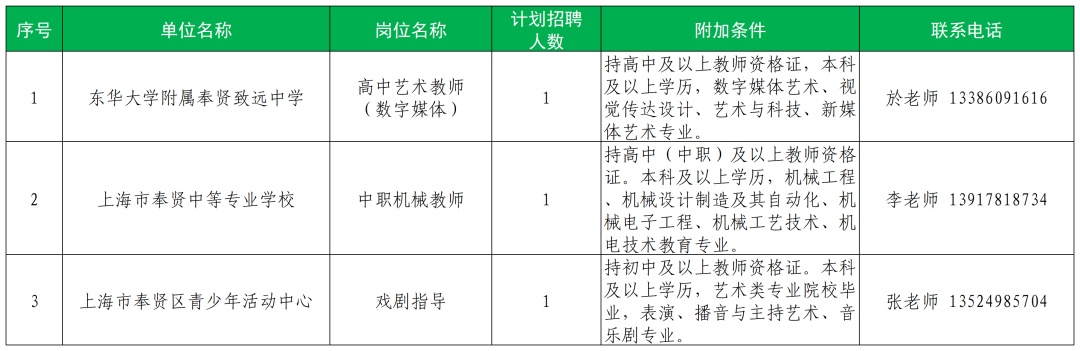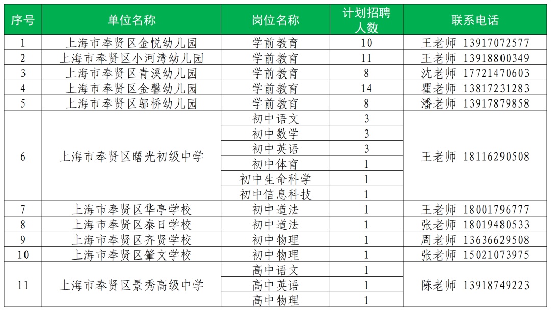 (更多教师招聘岗位信息和招聘流程可查询上海各区域官微或教育局网站)