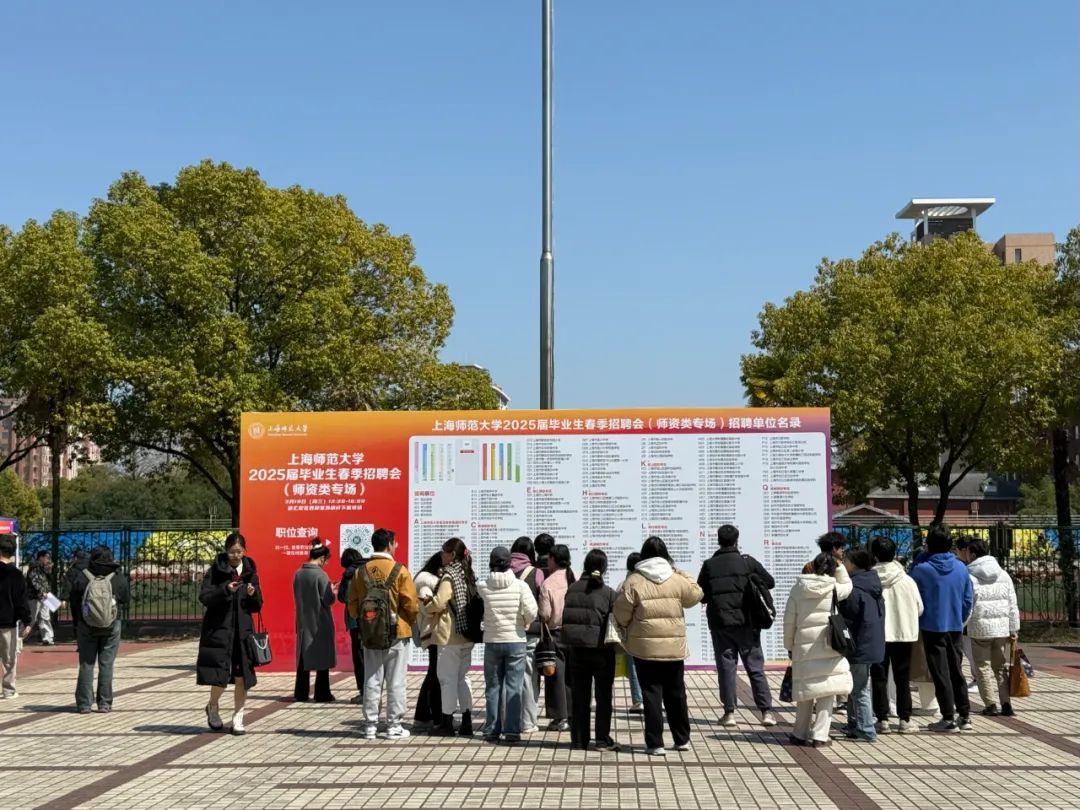 3月19日,上海师范大学2025届毕业生春季招聘会(师资类专场)举行,超过300所学校和教培机构现场设摊,不少学校校长亲自带队招聘。