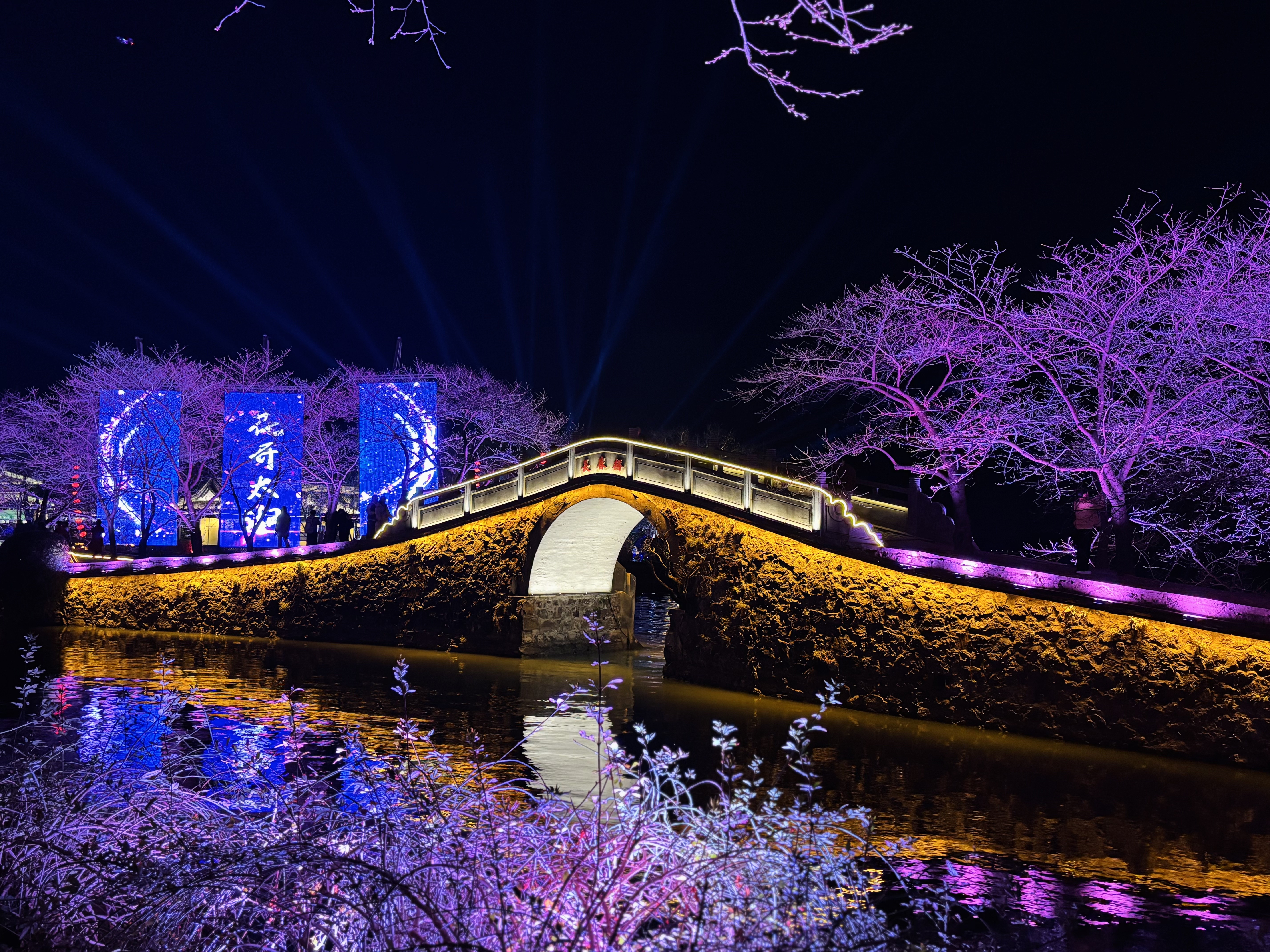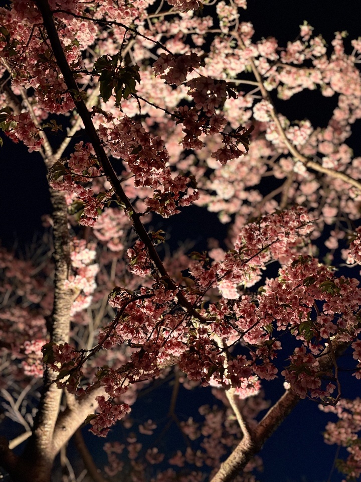 夜樱游园首晚,满园樱花虽尚未尽数盛开,但在灯光轻抚下,仍绽放出流光溢彩的风姿。灯光璀璨如星河,与樱花交相辉映,编织出一幅幅梦幻般的画卷。