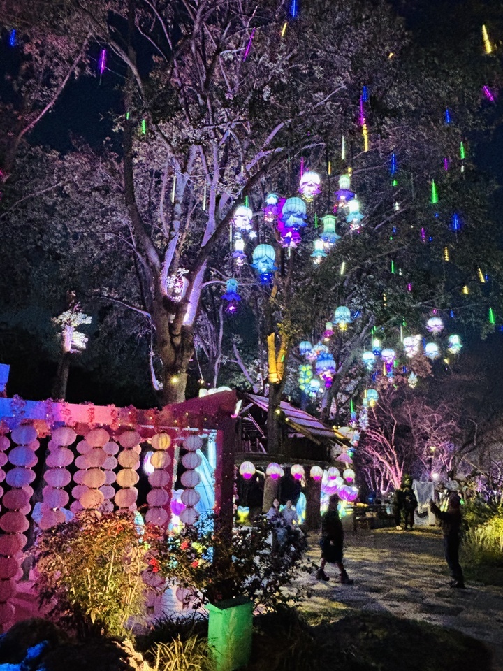 一盏盏精巧的花灯,如同点点繁星,散落在樱花林间,引领市民游客步入一场光影交错的奇幻之旅。漫步在这光影与花香交织的小径上,让心灵在春风中沉醉。