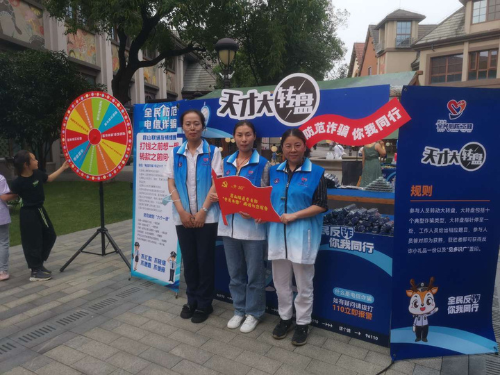 “陌生链接不要点,中奖短信多核实!”在“全民反诈 你我同行”反诈主题宣传活动现场,联通的党员志愿者们手持反诈手册,现场讲解诈骗套路。他们将防诈课堂搬进社区,创新推出反诈行动情景式教育,让现场市民亲历“被骗现场”;在广场设置“天才大转盘”互动游戏区,通过你问我答的形式,让老年居民秒变“反诈通”。