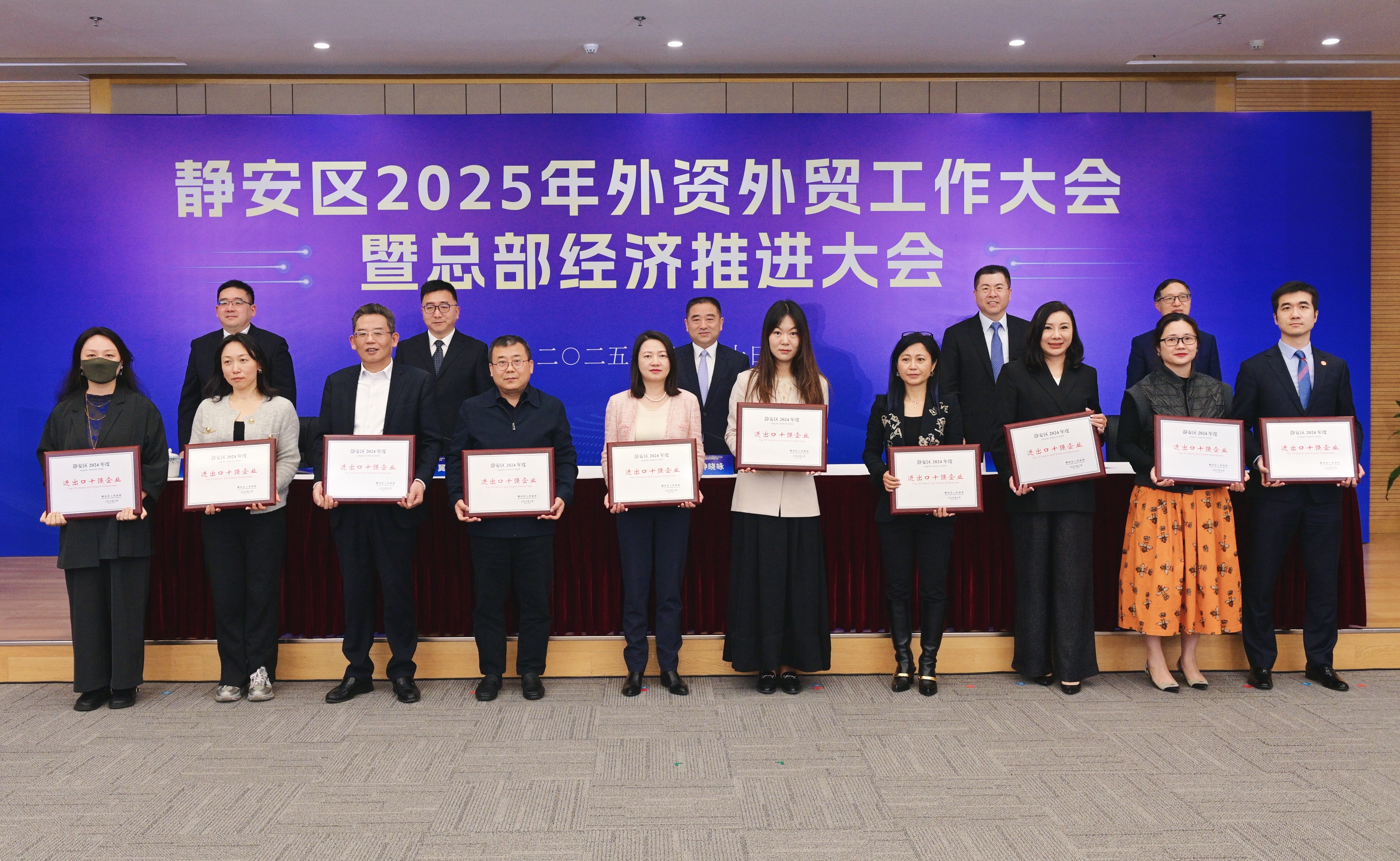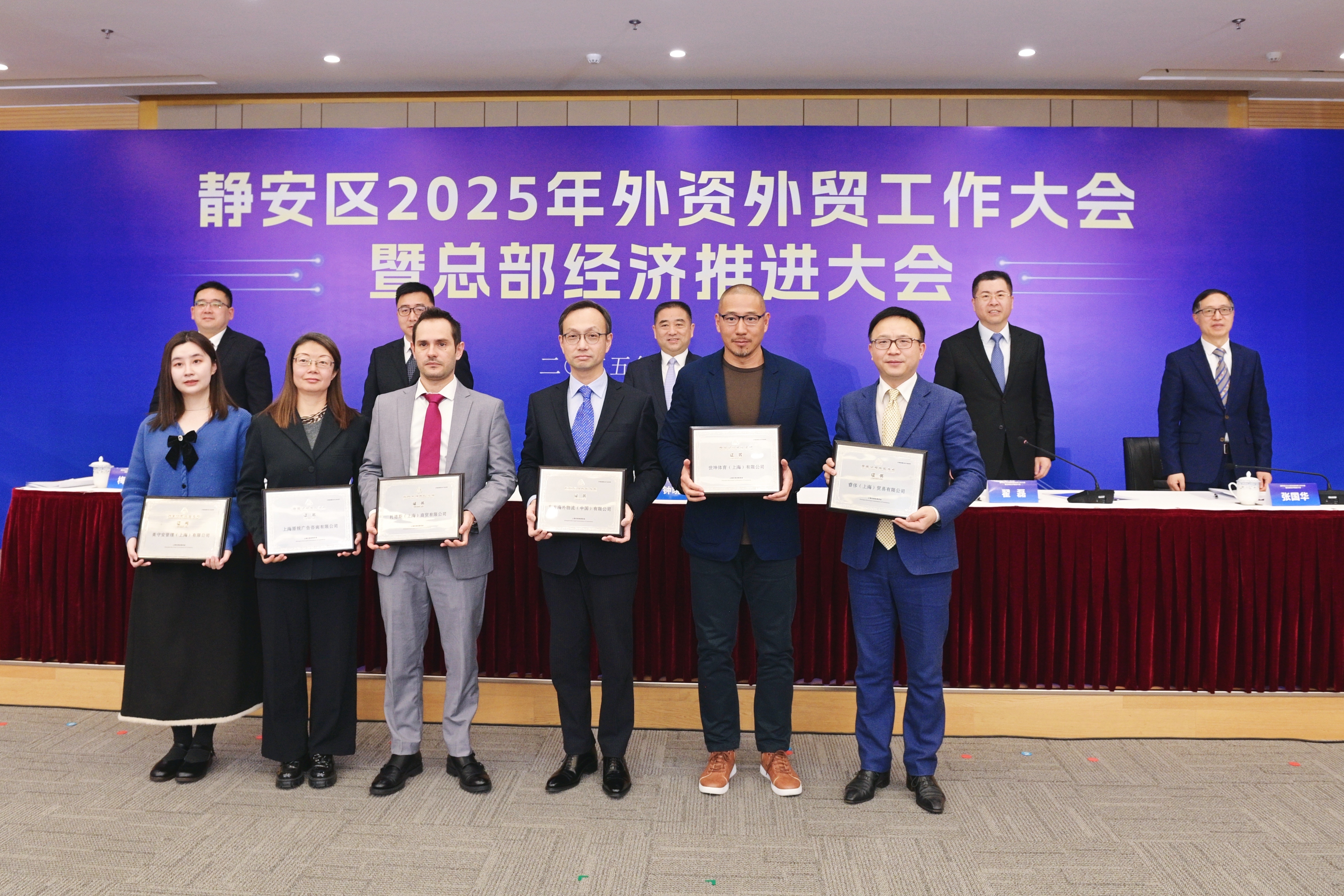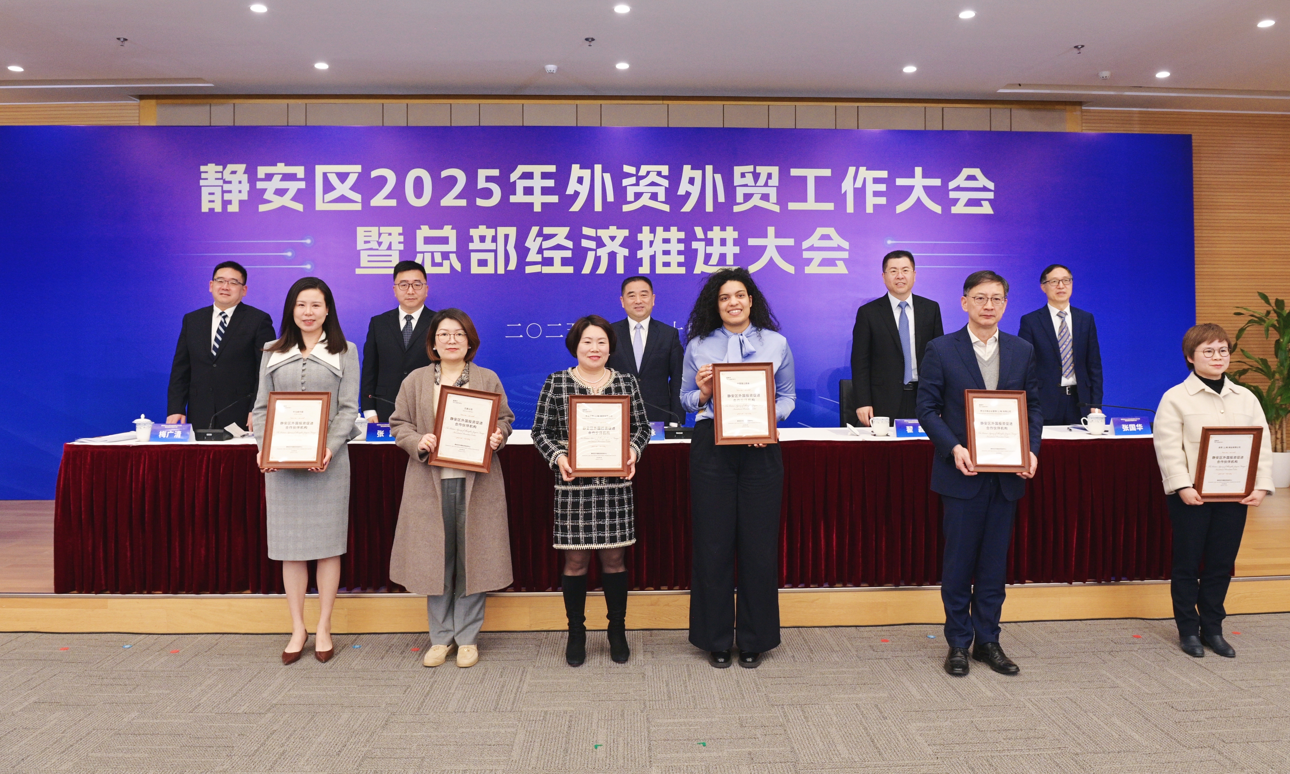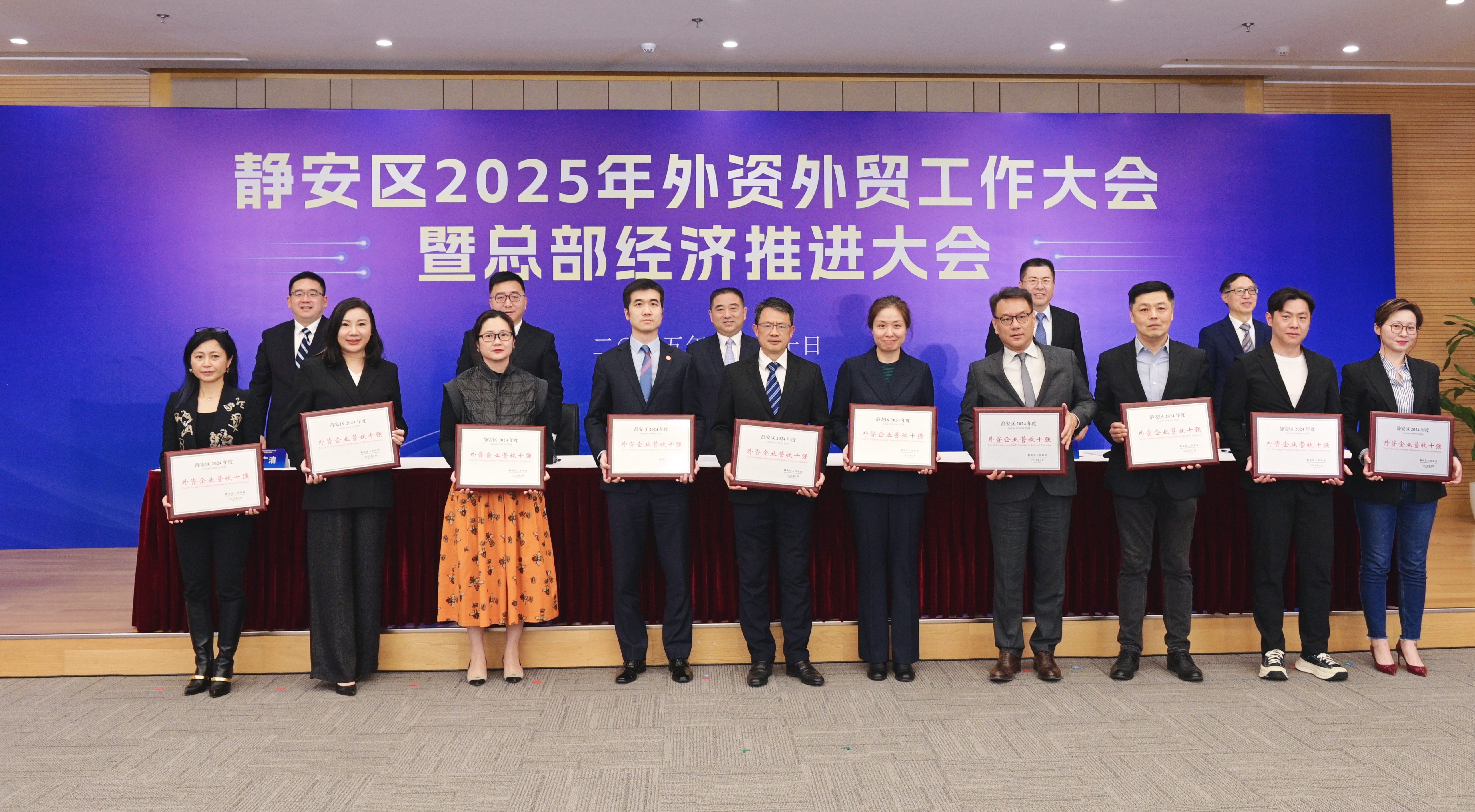 会上依次为跨国公司地区总部、静安区外资企业营收十强、静安区外贸企业进出口十强以及第二批静安区外商投资促进合作伙伴机构颁发证书,感谢和见证外资外贸企业和外资促进合作伙伴对静安开放经济的长足贡献。