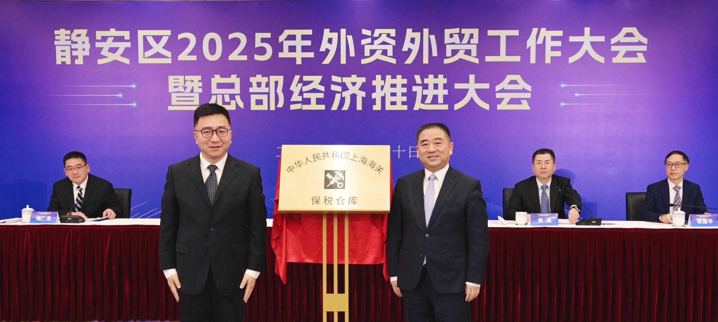 会上,钟晓咏、张翼共同为张园保税仓揭牌。作为上海海关与静安区合作推进的重点项目,静安置业张园专用型保税仓库,在海关总署的指导下,充分利用张园南京西路核心商圈的地理优势,秉承“传承与创新并重”的理念,成为了上海首个位于商业核心区域、坐落在历史保护建筑内的专用型保税仓,开创了海关智慧监管创新范例。