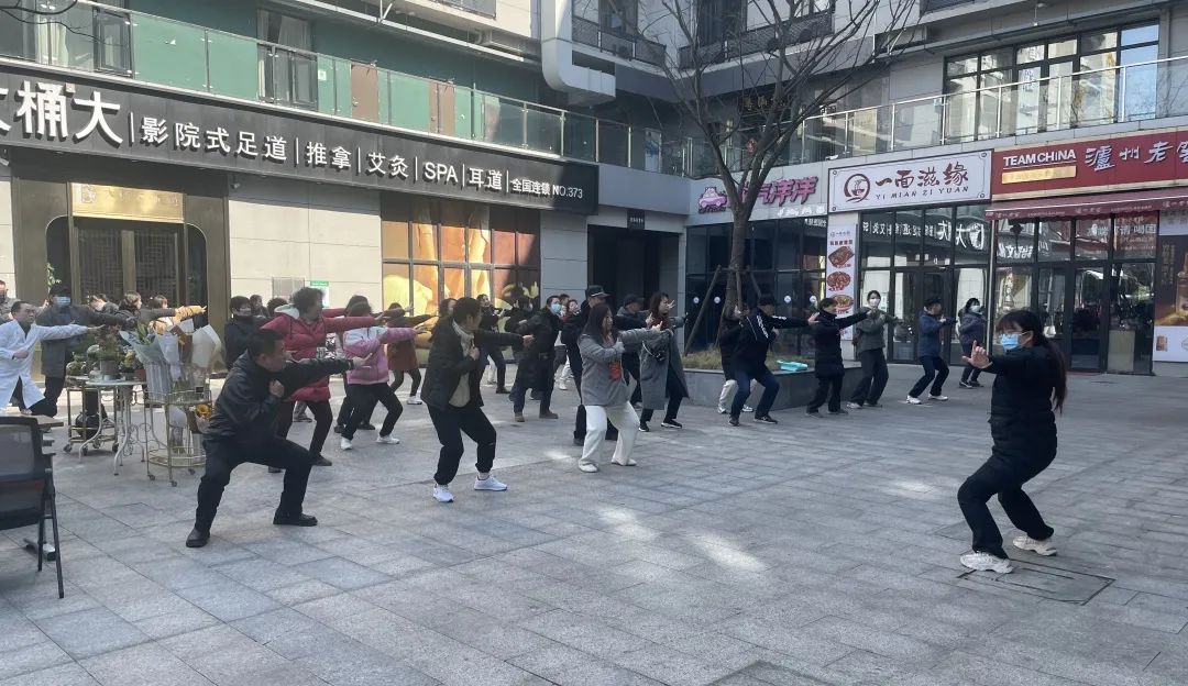 中医医师带领大家练习“八段锦”,将传统养生功法与现代健身理念碰撞出全民健康“火花”。