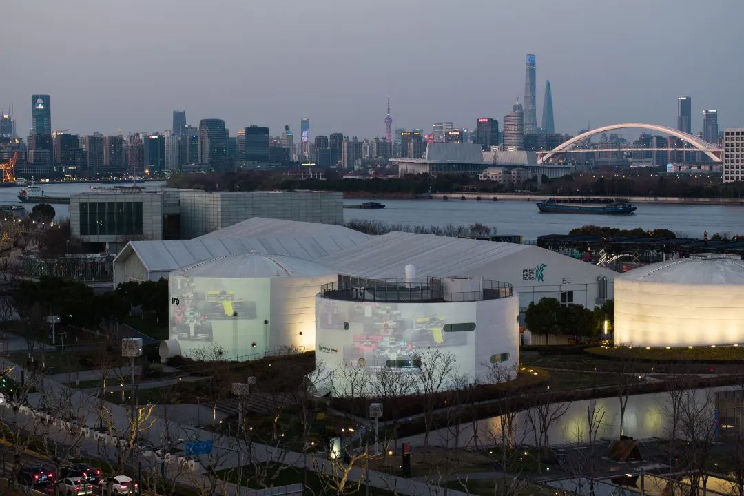 据悉,为做好“F1点亮上海”宣传推广活动景观照明保障,展示“一江一河”区域城市夜景,从3月20日至23日,西岸油罐艺术中心1、2号罐将于每天18:00—22:00循环播放F1活动宣传视频。视频不仅展现了参赛车手们的极限操控,还特别呈现了中国首位F1车手周冠宇的镜头,包括其主场备战的训练画面和往届赛事的高光时刻,突出其作为“中国赛车运动里程碑人物”的象征意义。同时,视频收录了历届F1中国站的经典镜头,如舒马赫2006年在上海夺冠的片段,唤起车迷情感共鸣。