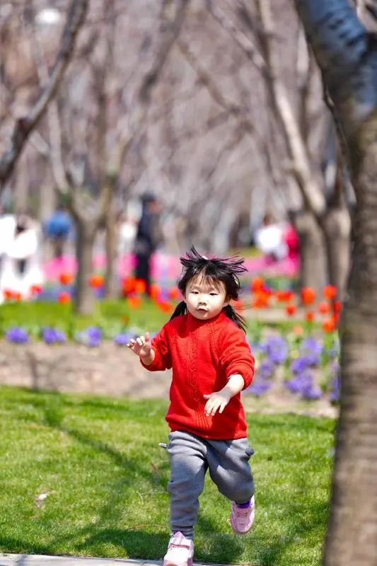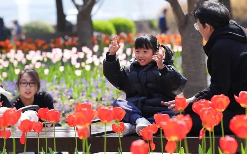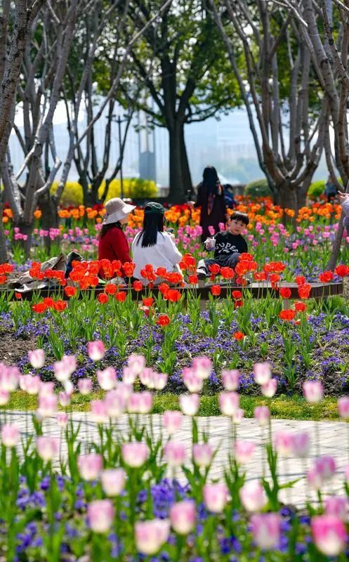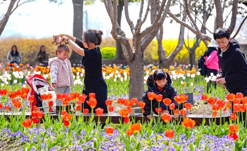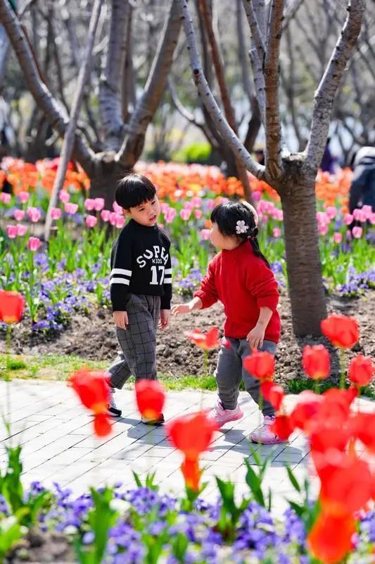 小朋友们在花间嬉戏,欢声笑语回荡在空气中,为花海增添了童趣与活力。他们追逐奔跑,与春天的气息融为一体,成为滨江一道动人的风景。