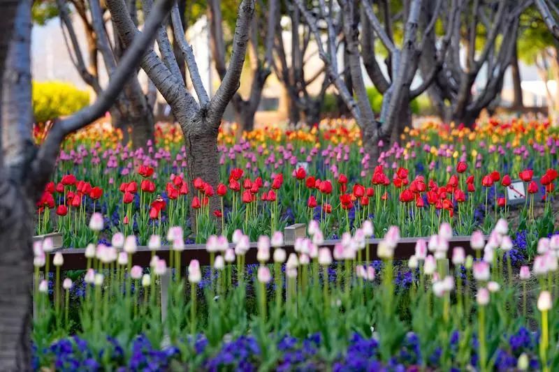 春日的黄浦滨江焕发出新的生机。五彩斑斓的郁金香在阳光下绽放,将滨江装点得如诗如画。琴键公园正上演一场春日盛宴,吸引了许多市民前来打卡拍照。