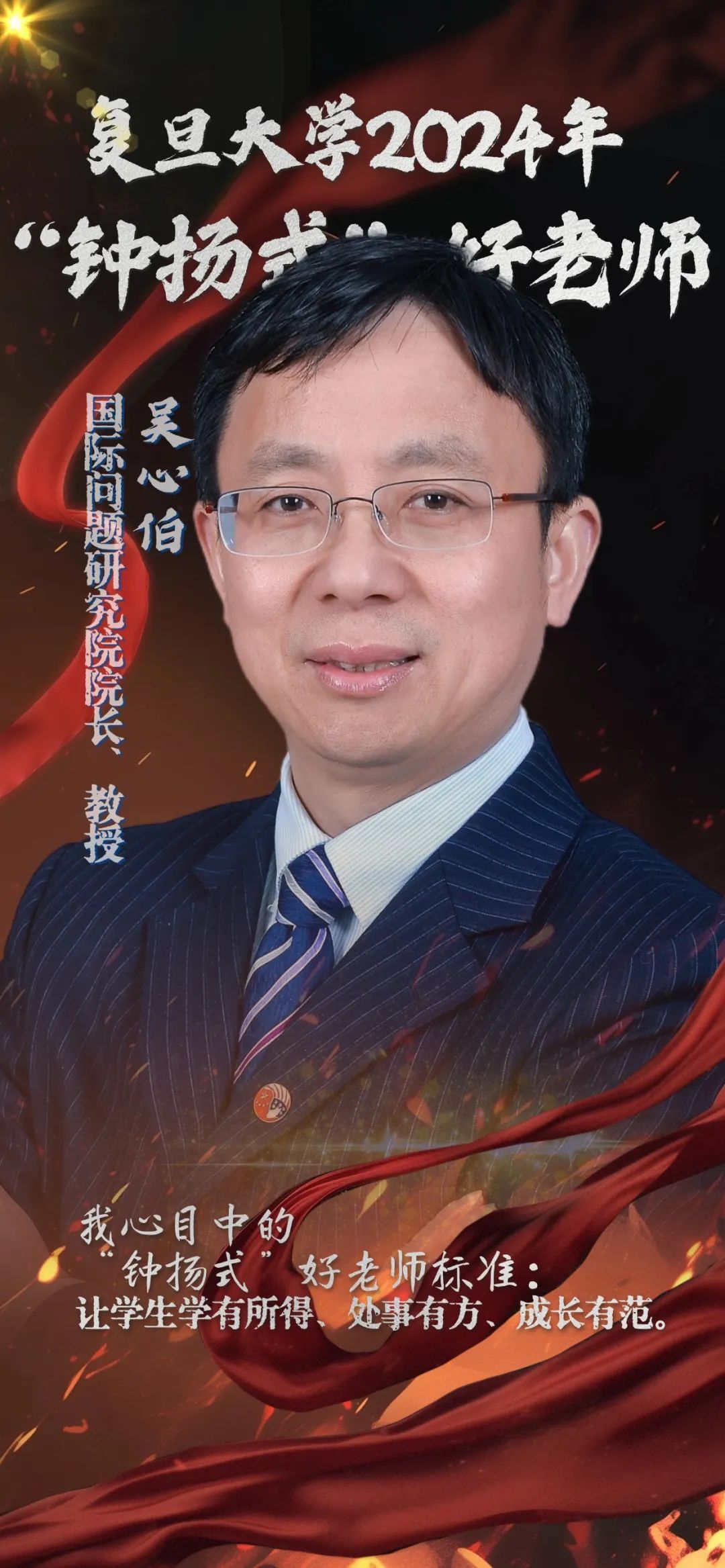 2024年,吴心伯获评“钟扬式”好老师称号。