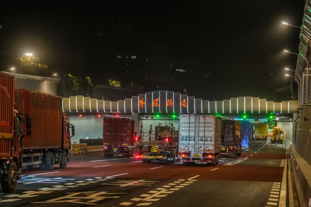外环隧道大修后的路面状况、驾驶视觉等显著改善,限速由大修前的50公里/时调整至60公里/时,并设置了相应的客货分道及可变车道。隧道内密布“雷视一体机”,精准捕捉车辆轨迹、车速,实时分析三孔车流量,智能联动调度潮汐车道及信号系统,实现交通异常预警与主动干预,显著提升通行效率。