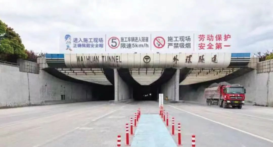 2003年建成通车的外环隧道是中国首条采用沉管法施工的特大型越江隧道,毗邻外高桥港区及物流仓储集群,曾经是上海北部地区唯一的大型货运车辆越江通道。郊环隧道可通行货运车辆后,外环隧道仍然承担区域内近七成集卡越江通行需求。