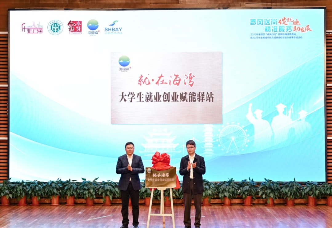 现场为“就·在海湾”大学生就业创业赋能驿站揭牌。