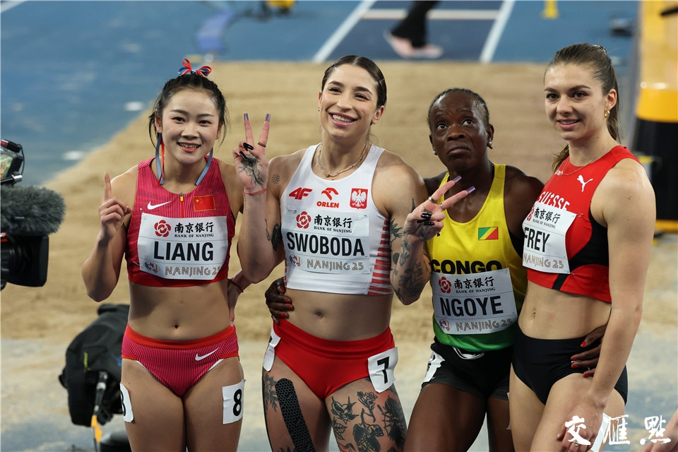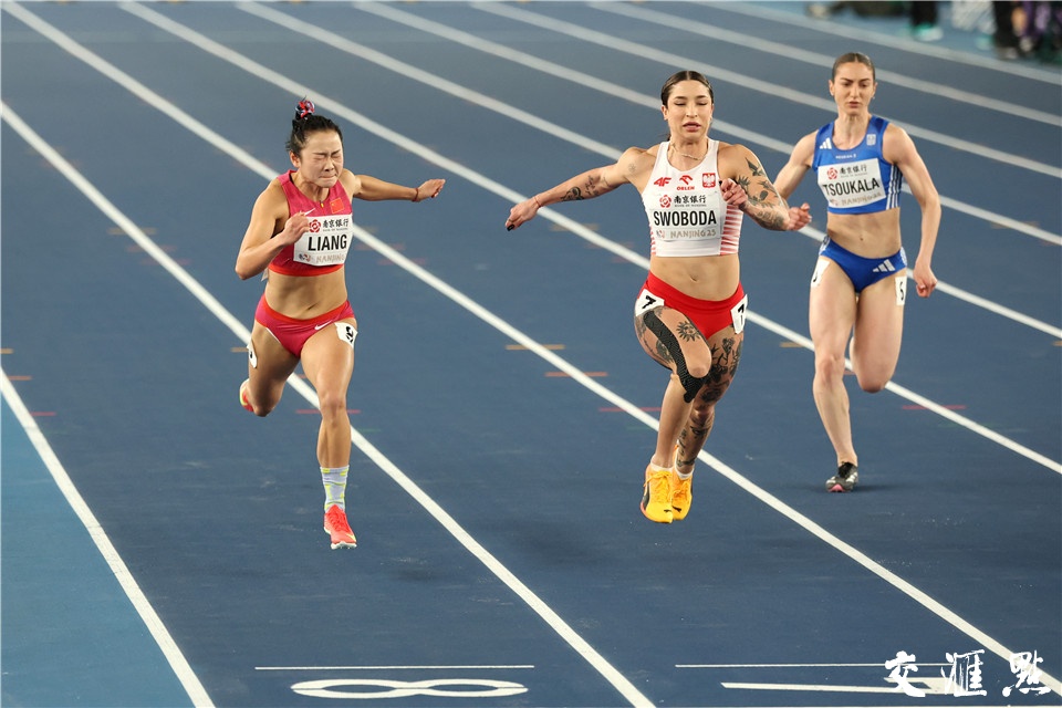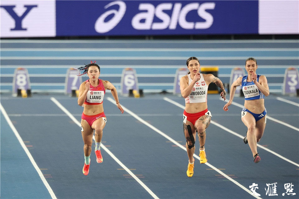 3月22日,2025年世界室内田径锦标赛进入第2比赛日。在女子60米预赛的比赛中,中国选手梁小静以7秒17的成绩晋级半决赛。7.17秒再次平了梁小静的职业生涯个人最好成绩。新华日报·交汇点记者 万程鹏 摄