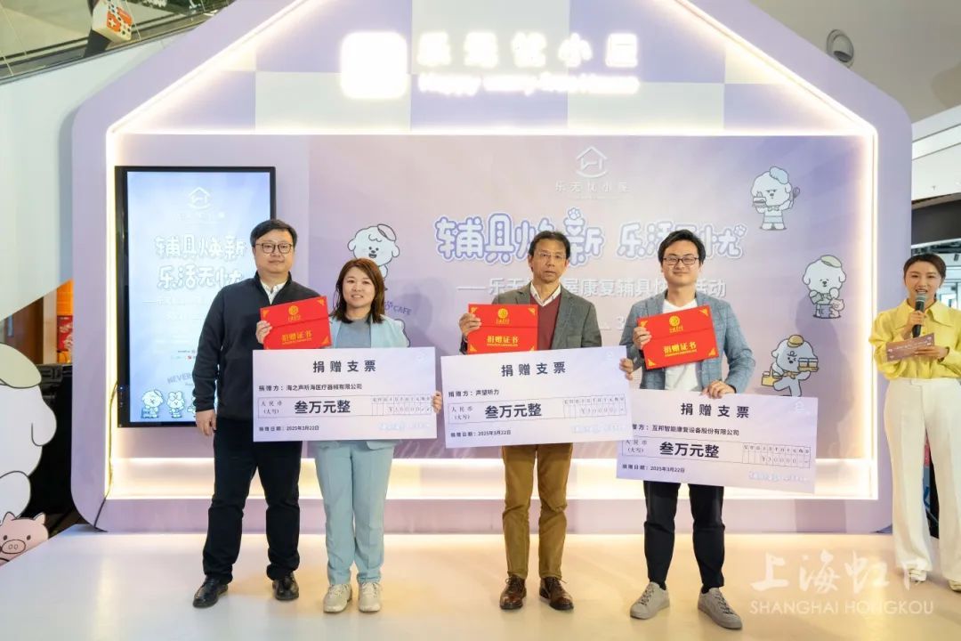 启动仪式上,上海灵动康悦健康技术有限公司、中国太平洋财产保险股份有限公司上海分公司、上海仁德基金会、上海海之声听海医疗器械有限公司、上海互邦智能康复设备股份有限公司、声望听力等爱心企业分别向虹口区老年基金会捐赠资金和辅具产品。