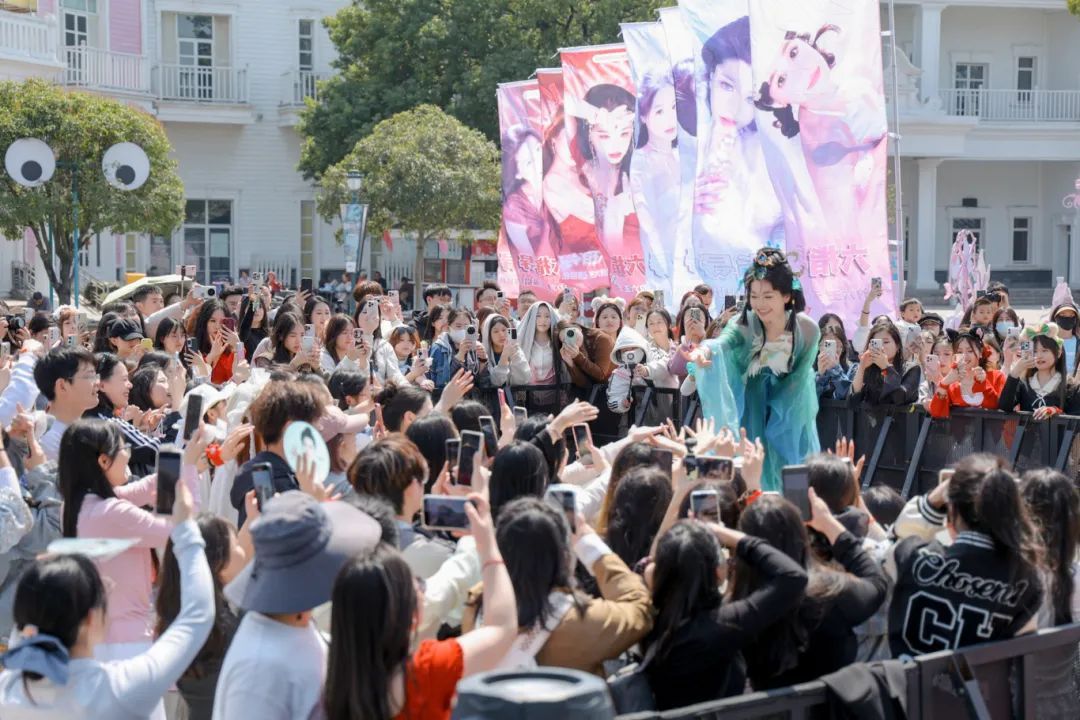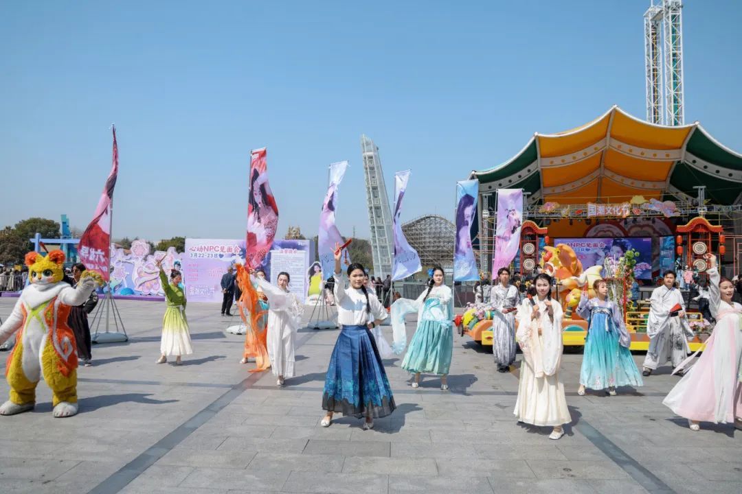 除了这些节日限定的演出,日常演艺同样精彩纷呈。《华章盛世》主题花车大巡游绝对是园区内的一道亮丽风景线。演员们身着华丽精美的传统服饰,迈着欢乐的步伐,与大型国潮花车共舞。《盛彩风华》魔术情景剧更是将魔术与传统文化故事巧妙结合。在神秘的氛围中,演员们通过精湛的魔术技巧,演绎着充满东方韵味的故事。COLORMIX女团、麒麟男团、SUGERFIZZ女团热辣登场,掌控舞台尽情开燥!众多百万级国风大咖齐聚组成NPC天团,重磅50+神颜国风NPC阵容与你心动相约!