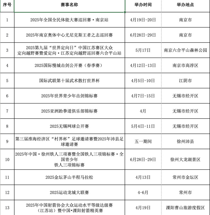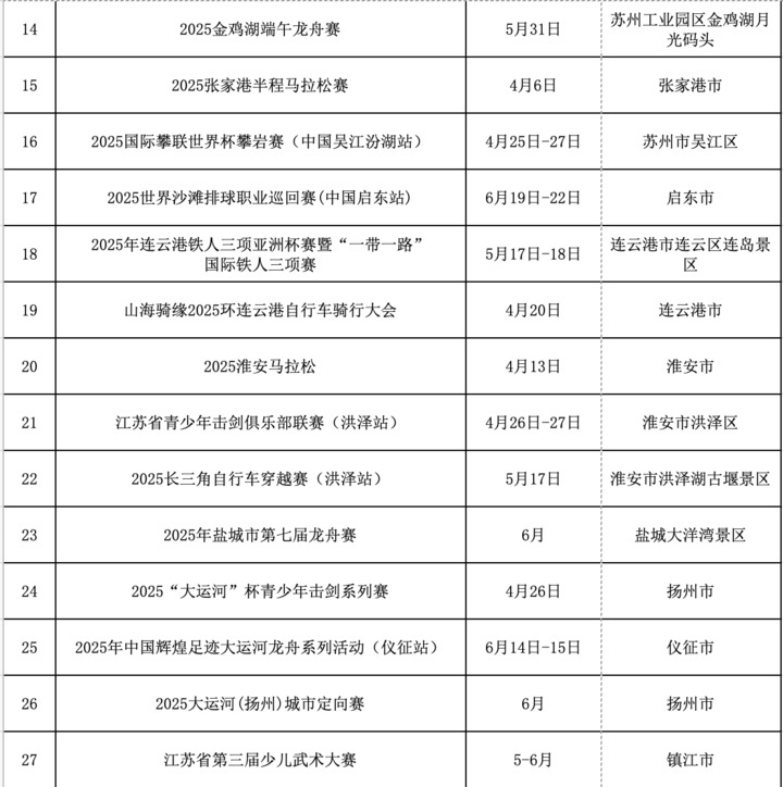 附:1.“享精彩赛事 游大美江苏”各设区市重点推介体育赛事目录(4月—6月)